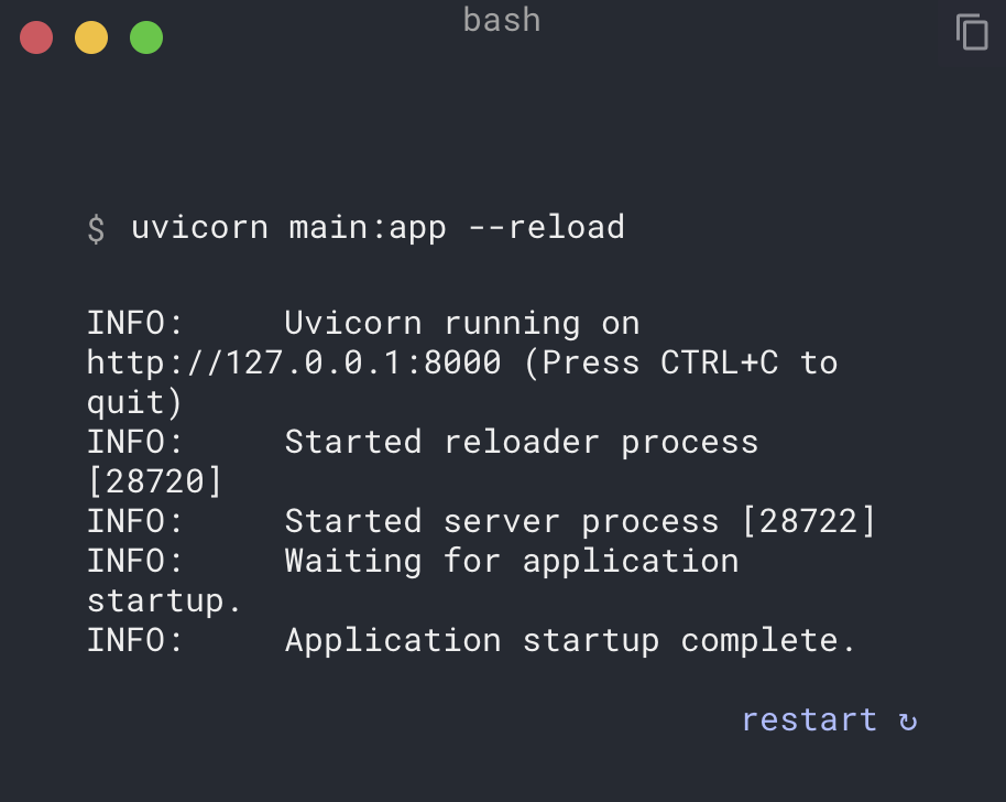 FastAPI ๋ฅผ ํตํด ๊ฐ๋จํ๊ฒ Python [Function ์ ๊ฒฐ๊ณผ๊ฐ์ ์น์์ ๋ณด์ฌ์ค]-build ์ ์๊ฒ ๋์๋ค. ํน์ง ์ฒ๋ผ ๊ฐ๊ฒฐํ ์ฝ๋์ ๋น ๋ฅธ ์ค์น๋ก ์๋ฌ๊ฐ ์๋ค. ์ด ํฌ์คํ ์์ ๋ ์์ธํ๊ฒ ์ ์ง๋ ์๊ฒ ๋ค. ์์ ๋ ๊ณต์๋ฌธ์ ํ์ด์ง์ ๋ค์ด๊ฐ์ ํ๋ฒ์ฉ ํด๋ณด๊ธฐ๋ฅผ ๊ถ์ฅํ๋ค.