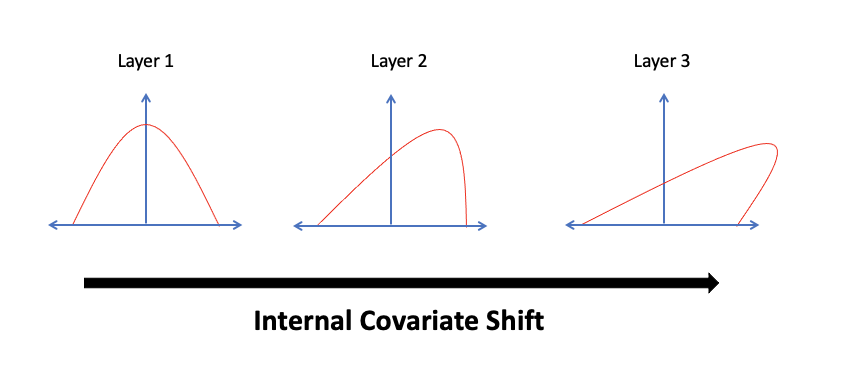 batch normalizaion ์ 2015๋ ์ ์ ์๋ ICS(Internal Covariate Shift) ๋ฌธ์ ๋ฅผ ์ค์ผ ์ ์๋ ์์ด๋์ด์ ๋๋ค. covariate shift ๋ ํ์ต ๋ ํ์ฉํ ๋ฐ์ดํฐ๊ฐ ์ค์ ์ถ๋ก ์ ์ฌ์ฉ๋๋ ๋ฐ์ดํฐ๊ฐ์ ๋ถํฌ๊ฐ ๋ค๋ฅด๋ฉด ์ถ๋ก ์ฑ๋ฅ์ ์ ์ํฅ์ ๋ฏธ์น ์ ์๋ค๋ผ๋ ์ฃผ์ฅ์ธ๋ฐ ์ด๊ฒ ์ ๊ฒฝ๋ง ๋ด๋ถ์์๋ ๋ฐ์ํ ๊ฒ์ด๋ค ๋ผ๋ ์ฃผ์ฅ์ ํ๋ฉฐ ์๊ธด์ฉ์ด๊ฐ Internal Covariate Shift ๋ผ๊ณ ํฉ๋๋ค. ์๋ ์ฌ์ง์ ๋ณด๋ฉด ์ง๊ด์ ์ผ๋ก ์ดํด๊ฐ ๋ ๊ฒ ๊ฐ์ต๋๋ค. ์ ๊ฒฝ๋ง์ ํต๊ณผํ๋ฉด์ ๋ฐ์ดํฐ์ ๋ถํฌ๊ฐ ๋ฌ๋ผ์ง๋ ํ์์ด ๋ฐ์ํ๋๋ฐ